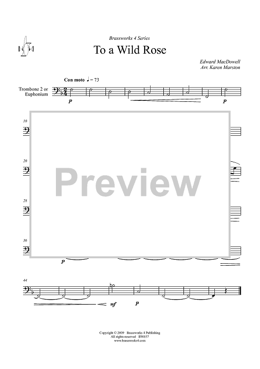 Digital Sheet Music for To A Wild Rose - Trombone 2 by Karen Marston, Edward MacDowell scored for Brass Quartet; id:411305
