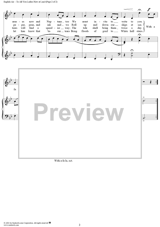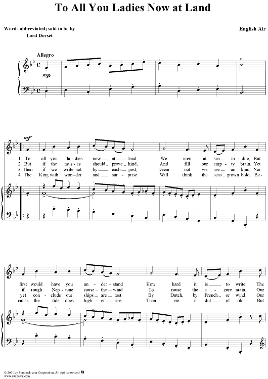 Digital Sheet Music for To all you ladies now at land by Traditional scored for Piano/Vocal; id:258827