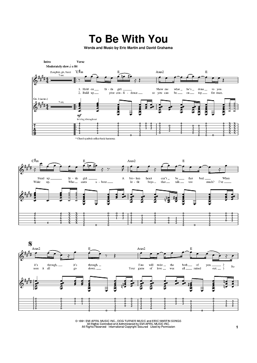 Digital Sheet Music for To Be With You by Westlife, David Grahame, Eric Martin, Mr. Big scored for Guitar Tab; id:370987