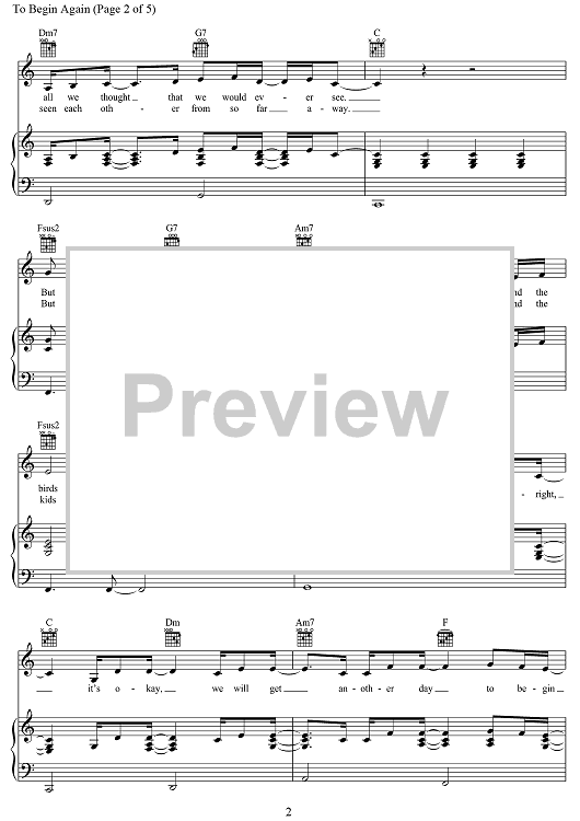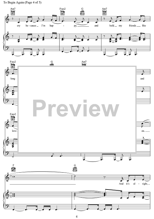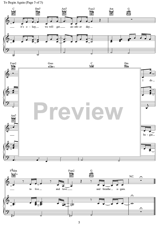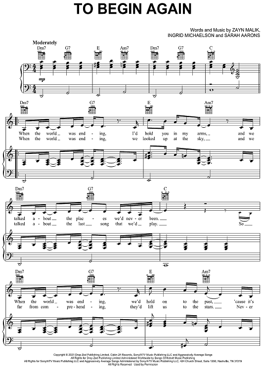 Digital Sheet Music for To Begin Again by Ingrid Michaelson, Zain Malik, Zayn, Sarah Aarons scored for Piano/Vocal/Chords; id:469157