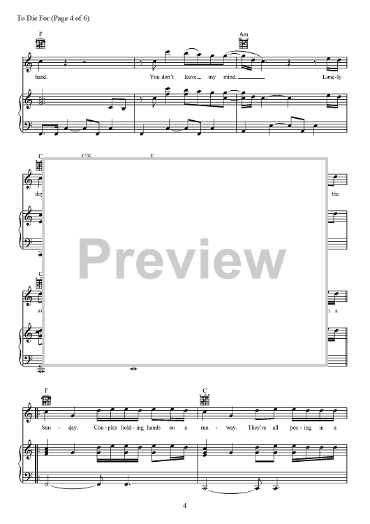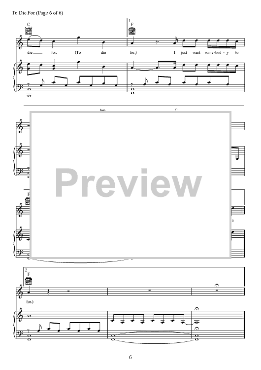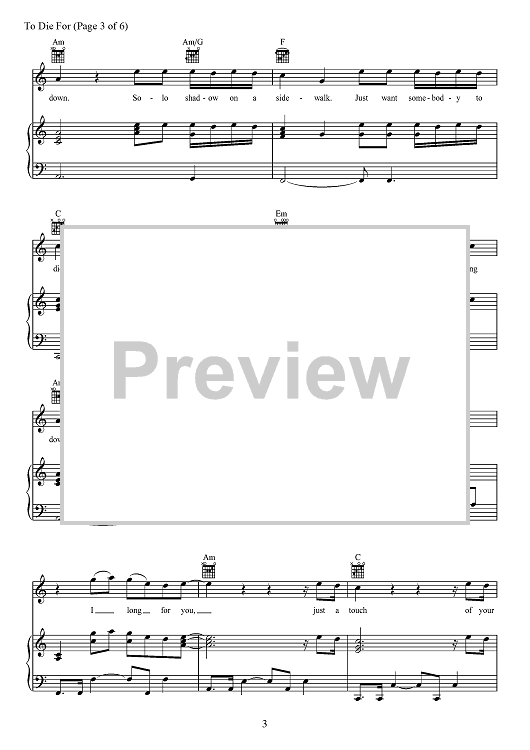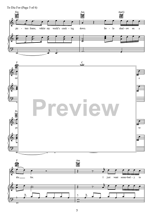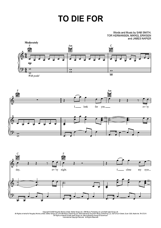 Digital Sheet Music for To Die For by Sam Smith, James Napier, Tor Hermansen, Mikkel Eriksen scored for Piano/Vocal/Chords; id:468044