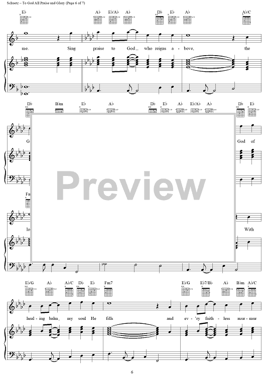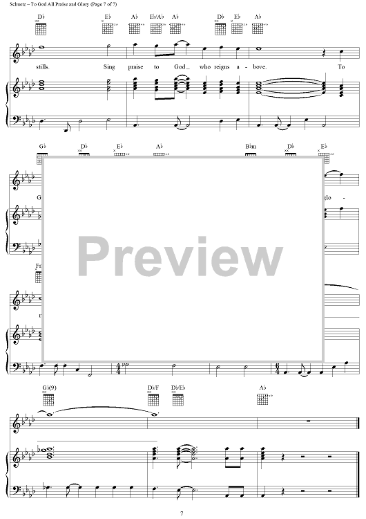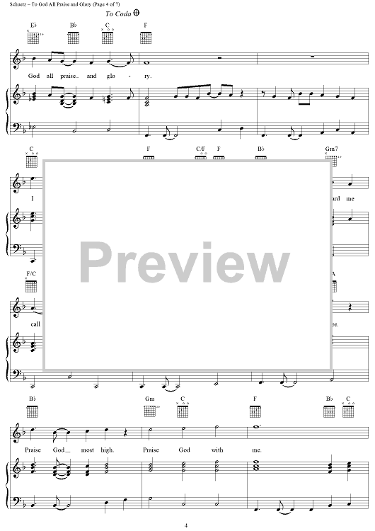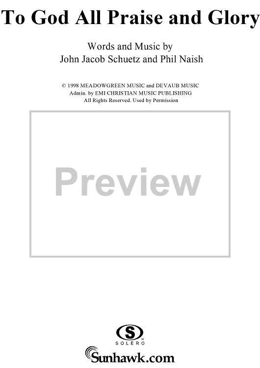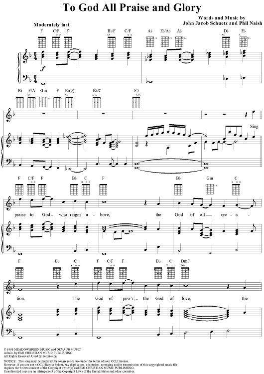 Digital Sheet Music for To God All Praise and Glory by Steve Green, Phil Naish, John Jacob Schuetz scored for Piano/Vocal/Chords; id:119630