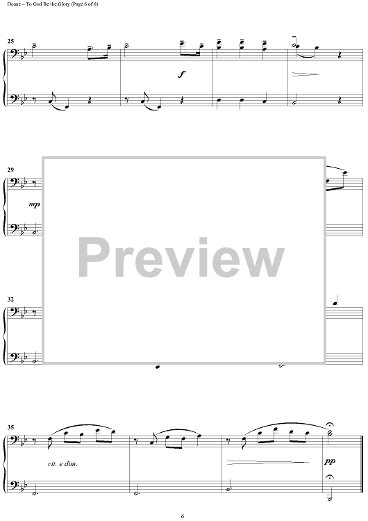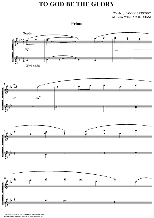 Digital Sheet Music for To God Be The Glory by Fanny Crosby, William H. Doane scored for 1 Piano, 4 Hands; id:390187
