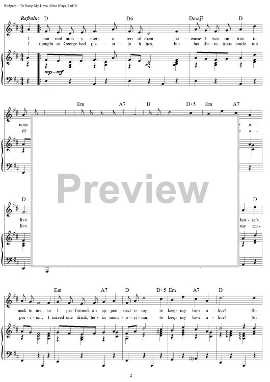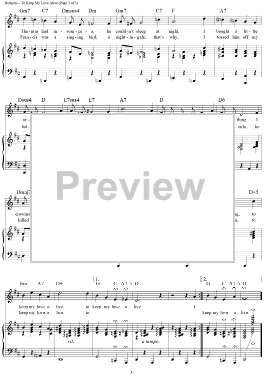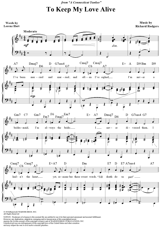 Digital Sheet Music for To Keep My Love Alive by Richard Rodgers, Lorenz Hart scored for Piano/Vocal/Chords; id:112840