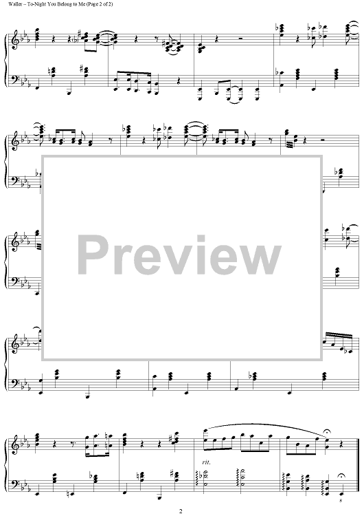 Digital Sheet Music for To-Night You Belong to Me (''Fats'' Waller's Conception) by Fats Waller, Billy Rose, Lee David scored for Piano Solo; id:316637