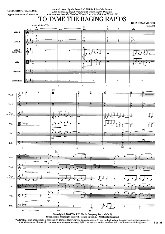 Digital Sheet Music for To Tame The Raging Rapids - Score by Brian Balmages scored for String Orchestra; id:441218