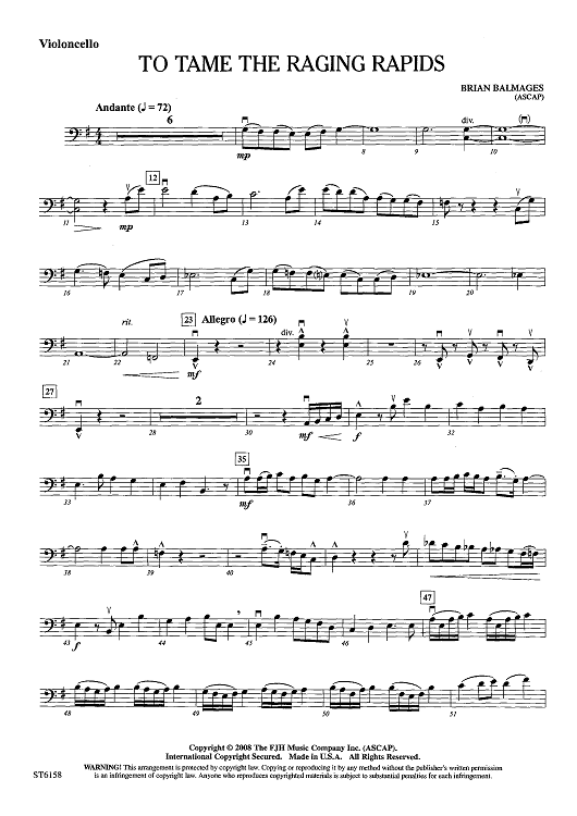 "To Tame The Raging Rapids - Violoncello" Sheet Music by Brian Balmages