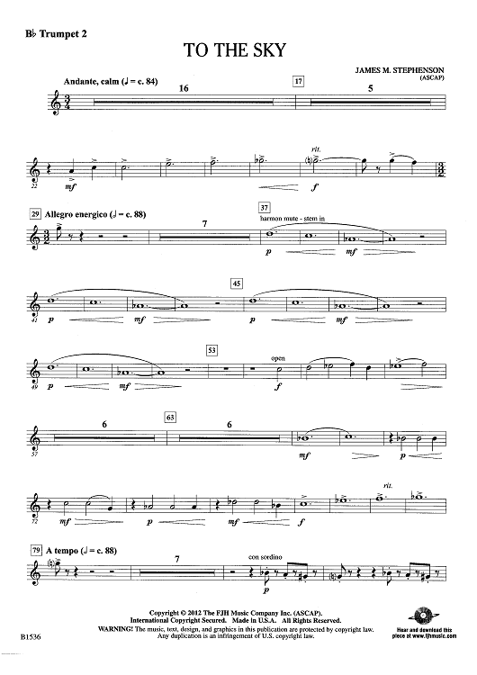 "To The Sky - Bb Trumpet 2" Sheet Music by James M. Stephenson