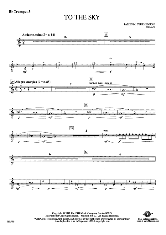 "To The Sky - Bb Trumpet 3" Sheet Music by James M. Stephenson