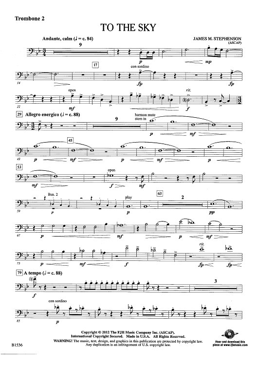 Digital Sheet Music for To The Sky - Trombone 2 by James M. Stephenson scored for Concert Band; id:442501