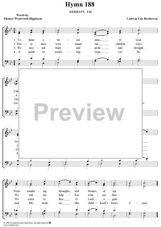 Digital Sheet Music for To Thine Eternal Arms, O God by Ludwig van Beethoven scored for Four-part Mixed Chorus; id:275163