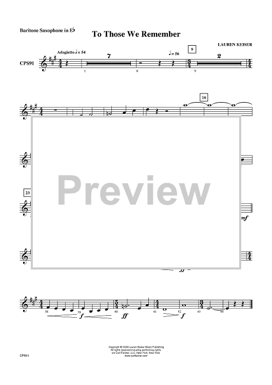"To Those We Remember - Baritone Saxophone" Sheet Music by Lauren Keiser