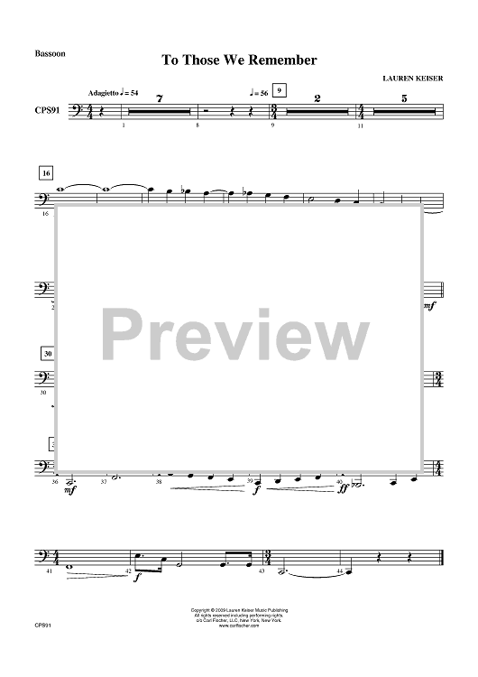 "To Those We Remember - Bassoon" Sheet Music by Lauren Keiser