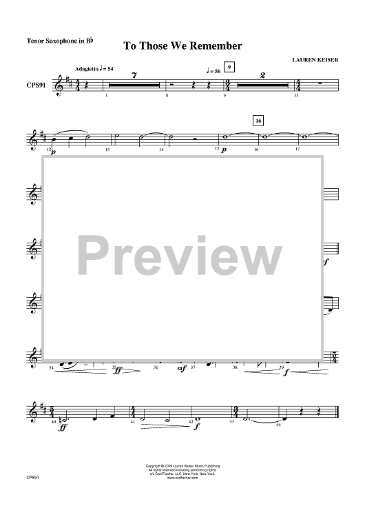 "To Those We Remember - Tenor Sax" Sheet Music by Lauren Keiser