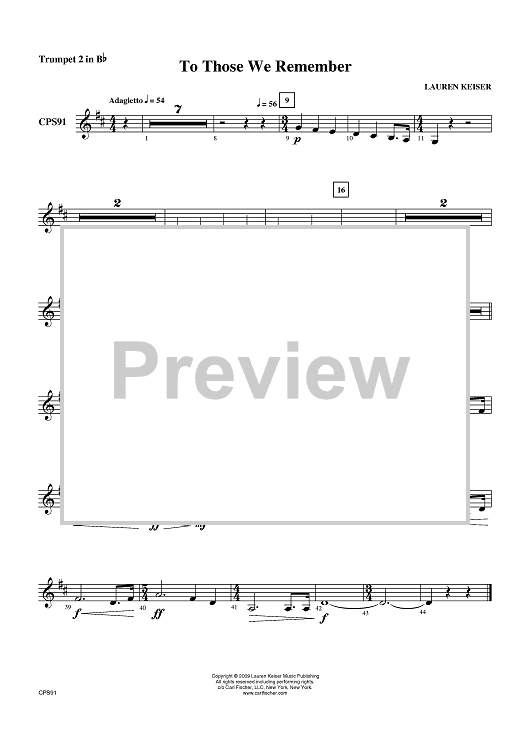 Digital Sheet Music for To Those We Remember - Trumpet 2 in B-flat by Lauren Keiser scored for Concert Band; id:405721