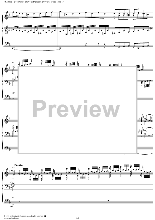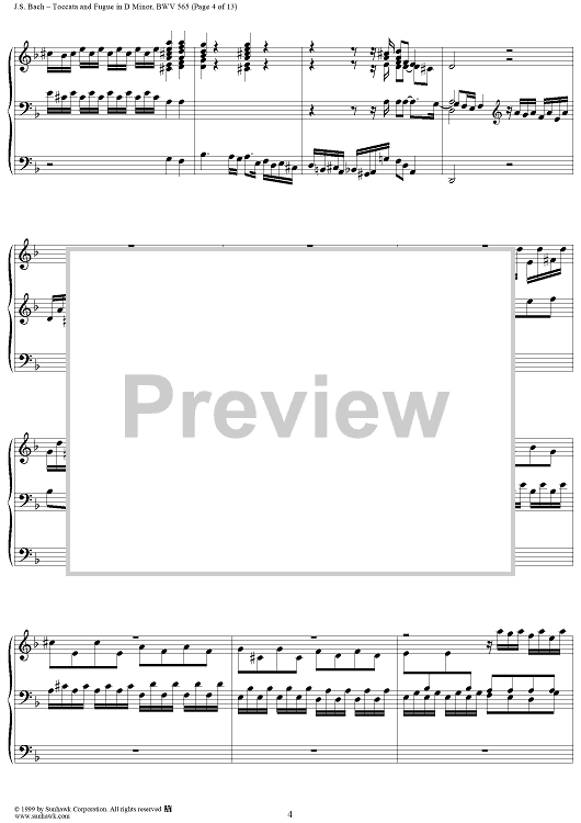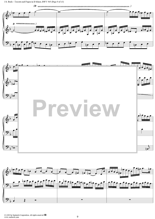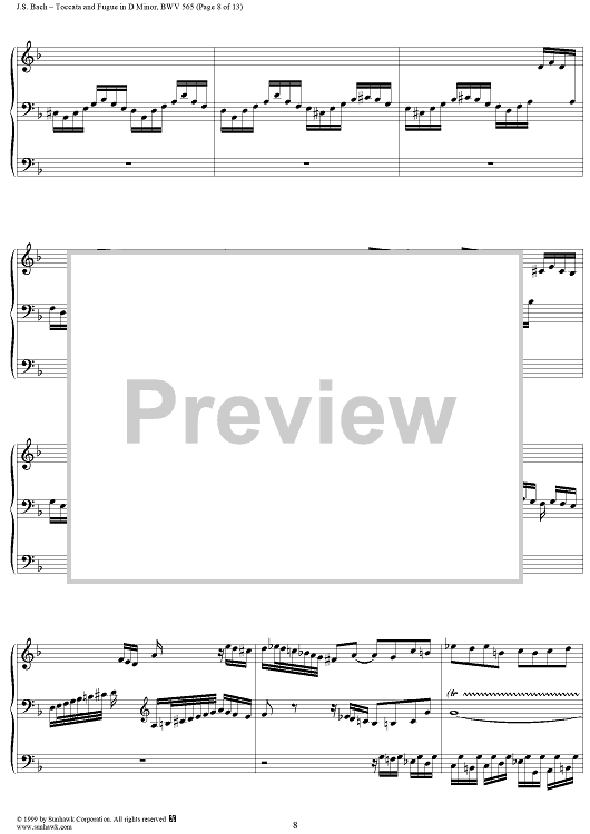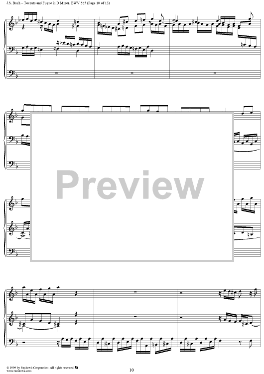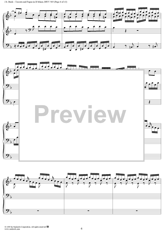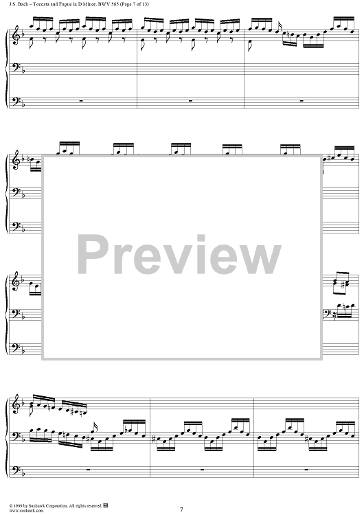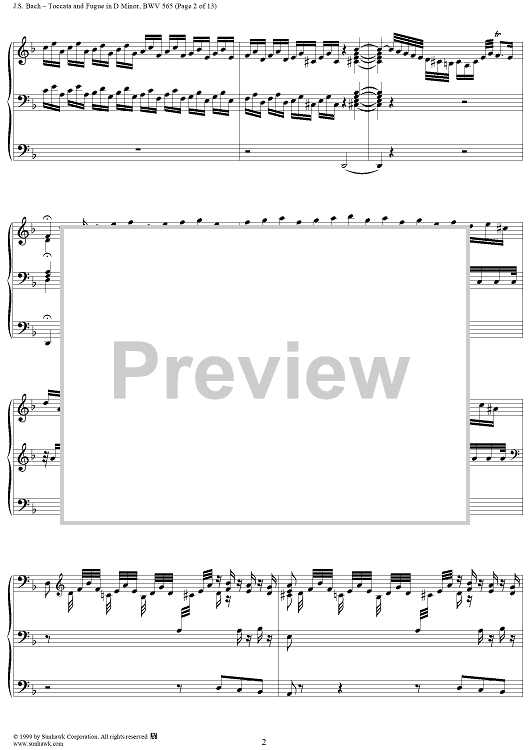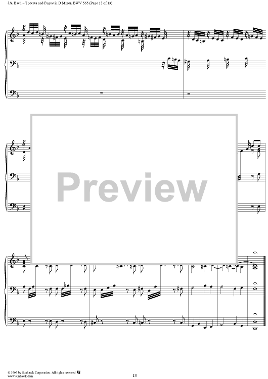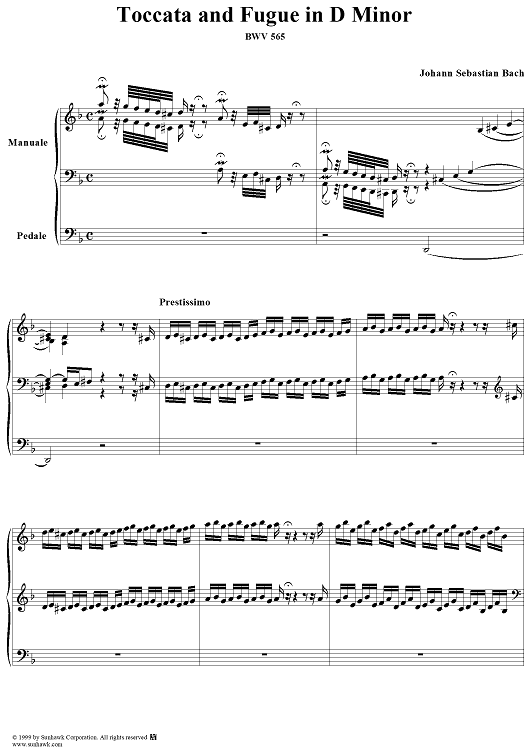 Digital Sheet Music for Toccata and Fugue in D Minor, BWV565 by Johann Sebastian Bach scored for Organ Solo; id:113369