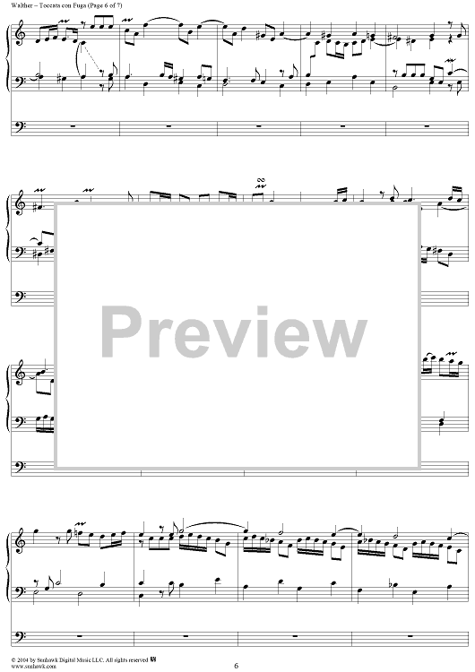 Digital Sheet Music for Toccata con Fuga by Johann Gottfried Walther scored for Organ Solo; id:298009