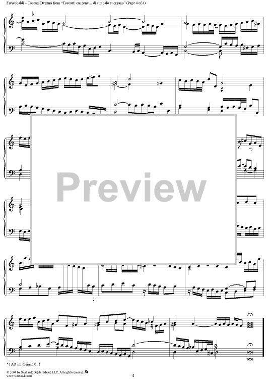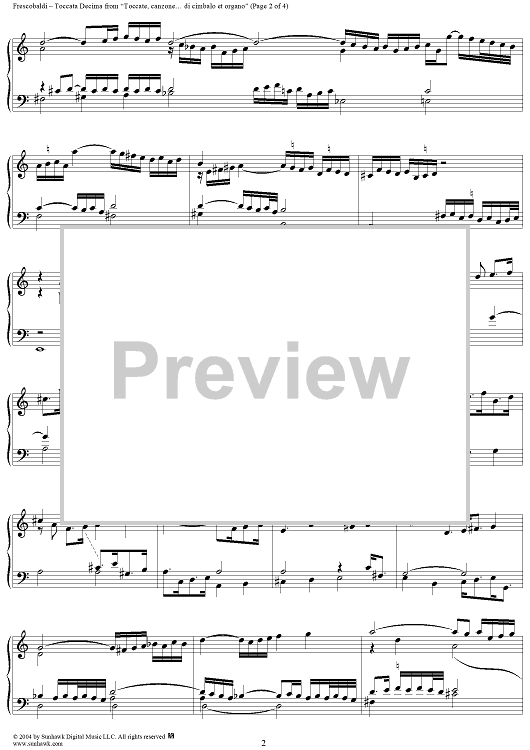 Digital Sheet Music for Toccata Decima, No. 10 from "Toccate, canzone ... di cimbalo et organo", Vol. II by Girolamo Frescobaldi scored for Harpsichord or Organ; id:295950