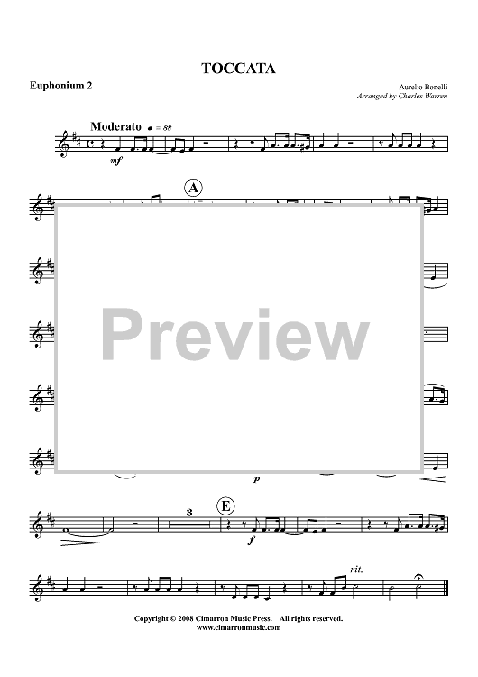 "Toccata - Euphonium 2 BC/TC" Sheet Music by Aurelio Bonelli