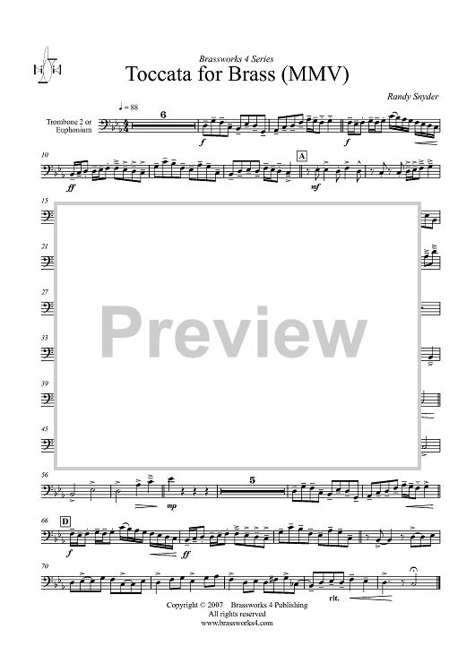 "Toccata for Brass (MMV) - Trombone 2 or Euphonium BC" Sheet Music by Randy Snyder