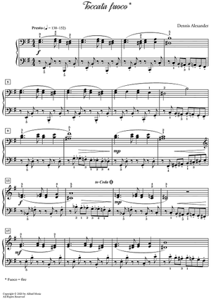Digital Sheet Music for Toccata fuoco by Dennis Alexander scored for Piano Solo; id:469146