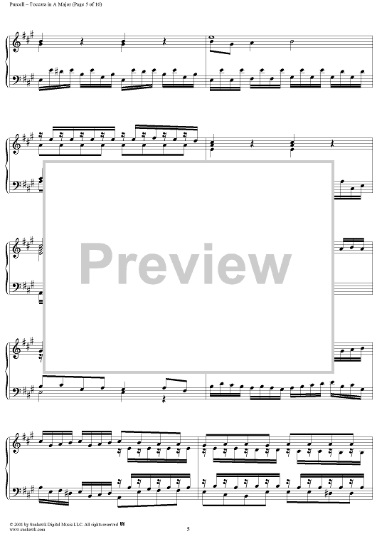Digital Sheet Music for Toccata in A Major by Henry Purcell scored for Piano Solo; id:254992