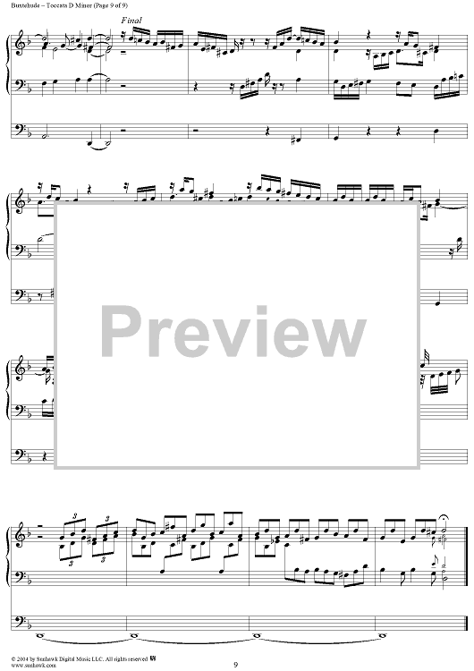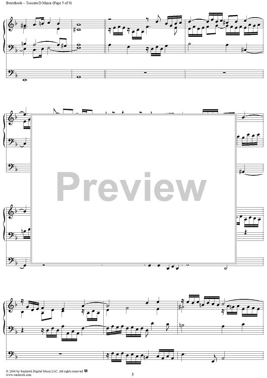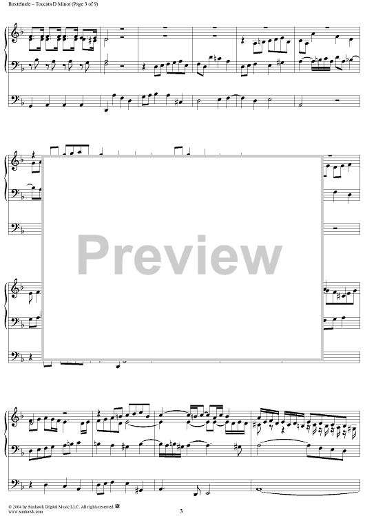 Digital Sheet Music for Toccata in D Minor by Dietrich Buxtehude scored for Organ Solo; id:302923
