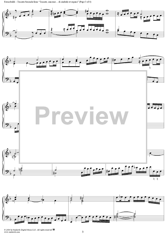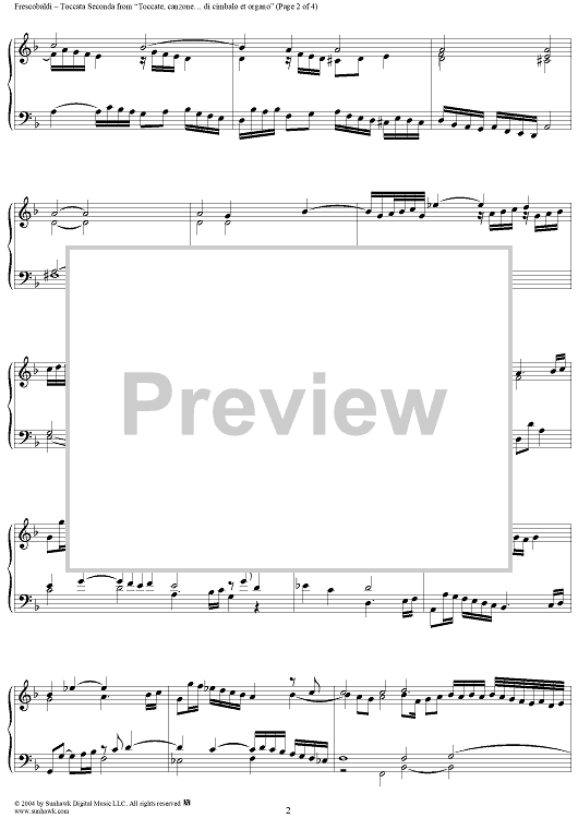Digital Sheet Music for Toccata Seconda, No. 2 from "Toccate, canzone ... di cimbalo et organo", Vol. II by Girolamo Frescobaldi scored for Harpsichord or Organ; id:295941