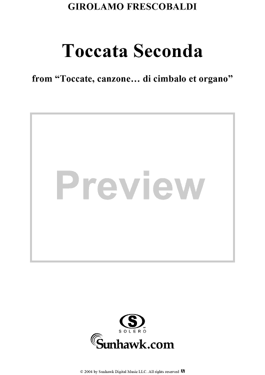 "Toccata Seconda, No. 2 from "Toccate, canzone ... di cimbalo et organo", Vol. II" Sheet Music by Girolamo Frescobaldi