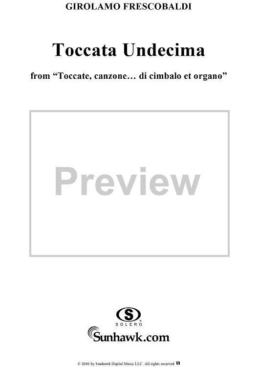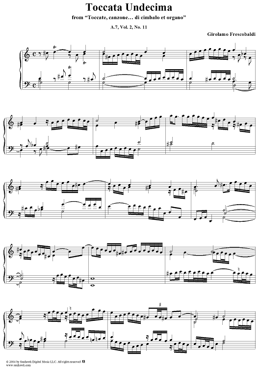 "Toccata Undecima, No. 11 from "Toccate, canzone ... di cimbalo et organo", Vol. II" Sheet Music by Girolamo Frescobaldi