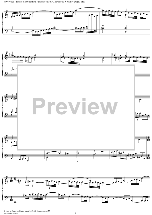 Digital Sheet Music for Toccata Undecima, No. 11 from "Toccate, canzone ... di cimbalo et organo", Vol. II by Girolamo Frescobaldi scored for Harpsichord or Organ; id:295951