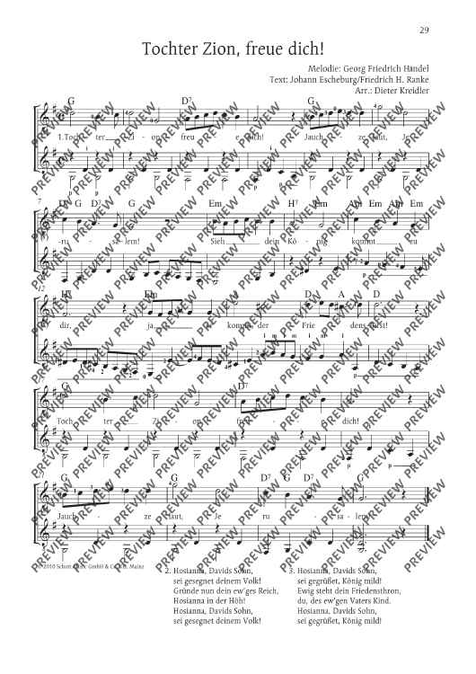 Digital Sheet Music for Tochter Zion, freue dich! by Dieter Kreidler scored for 1-3 Guitars (melody Instruments In C Ad Lib.); id:481754