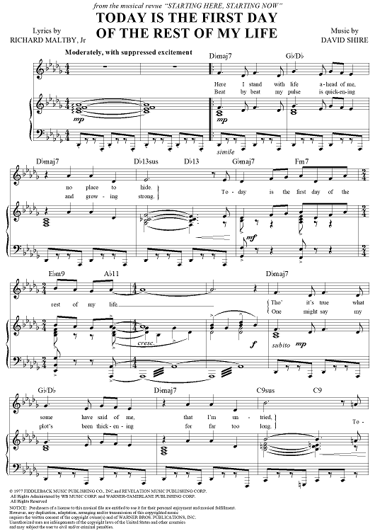 Digital Sheet Music for Today is the First Day of the Rest of My Life by David Shire, Richard Maltby Jr. scored for Piano/Vocal; id:257592