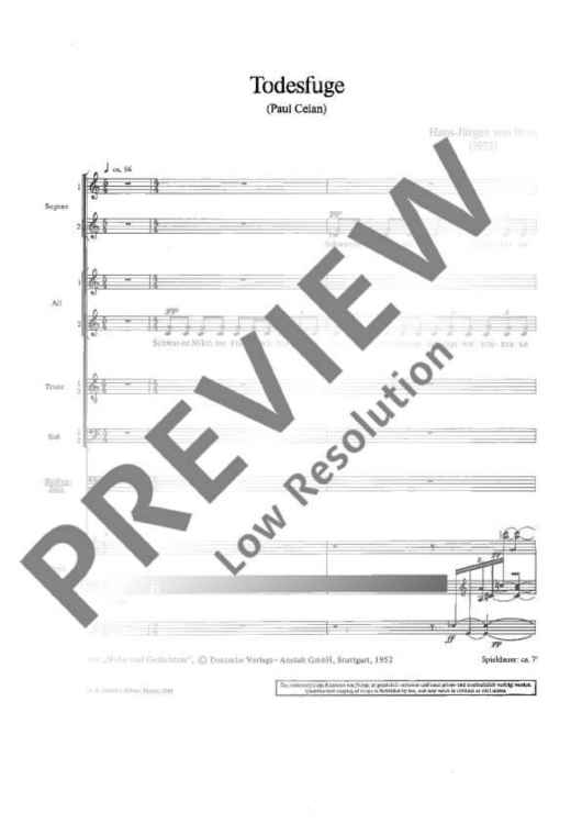 Digital Sheet Music for Todesfuge - Choral Score by Hans-Juergen von Bose scored for Mixed Choir (ssaattbb) With Baritone Solo And Organ; id:479568