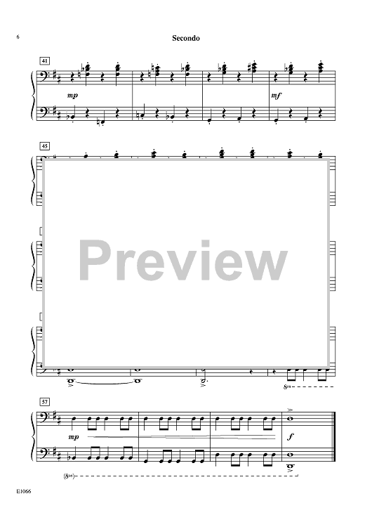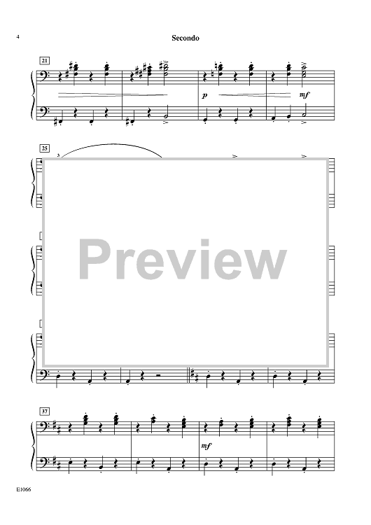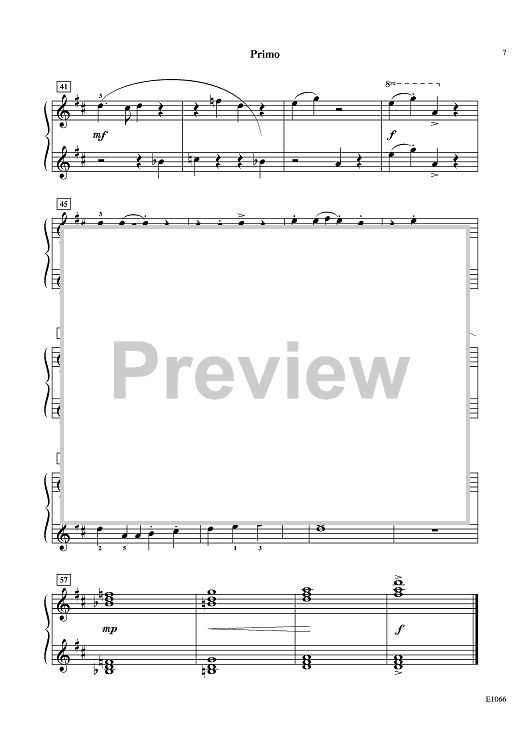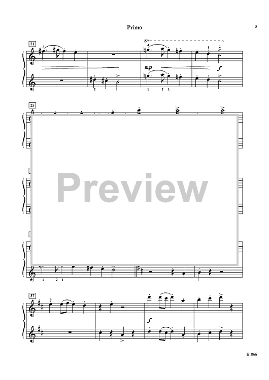 An intermediate duet for one piano, four hands that offers a wide array of articulations, dynamics, and interplay among the secondo and primo parts. This duet has a catchy melody that will be sure to keep performers’ and audiences’ toes tappin’!
