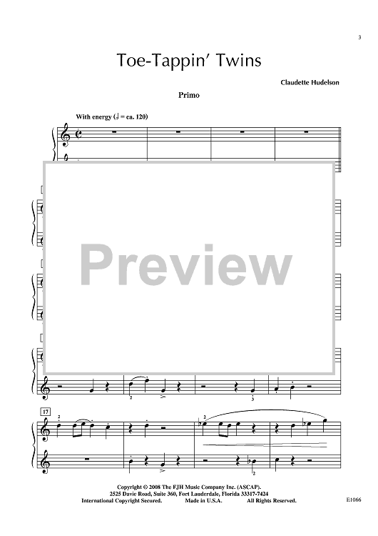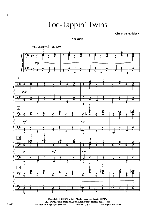 "Toe-Tappin' Twins" Sheet Music by Claudette Hudelson