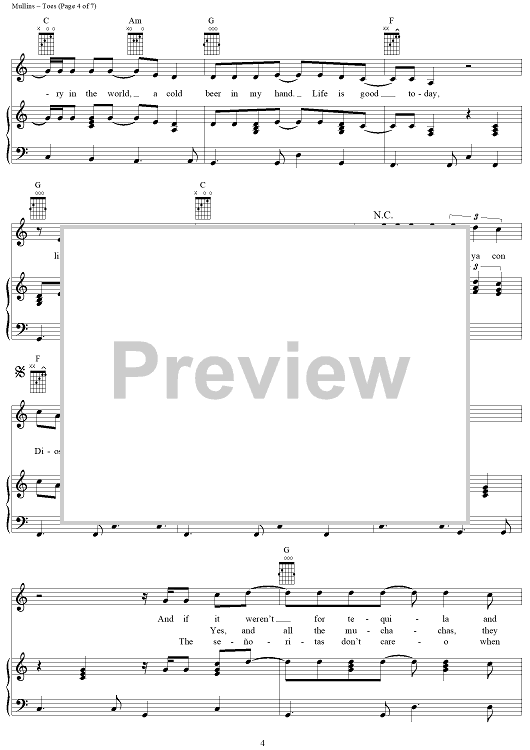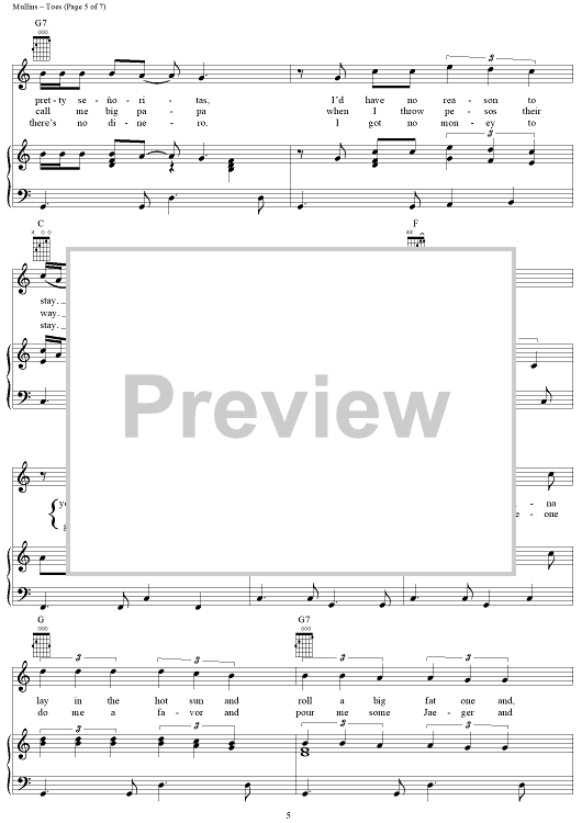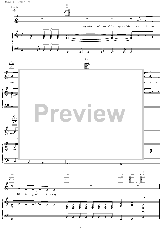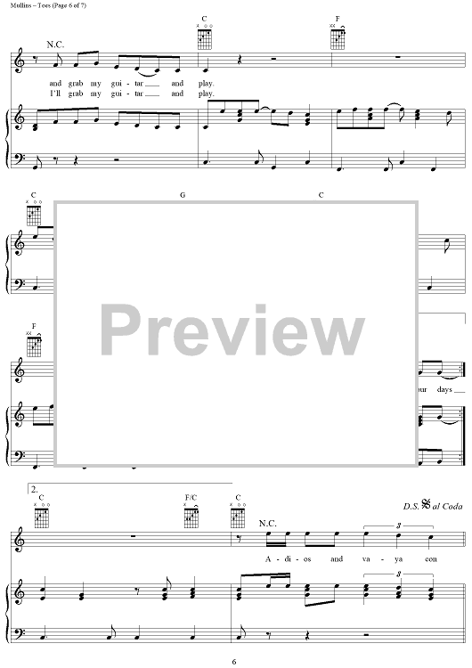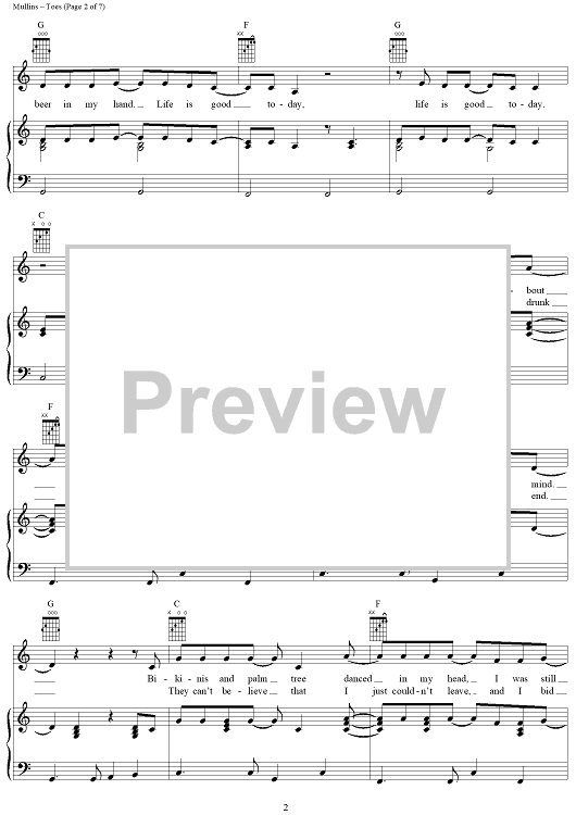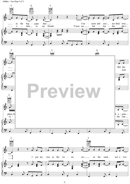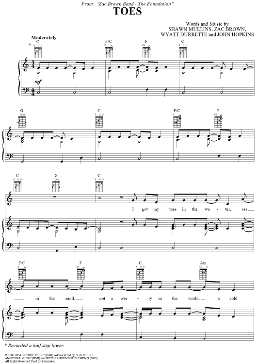 Digital Sheet Music for Toes by Shawn Mullins, Zac Brown scored for Piano/Vocal/Chords; id:409725