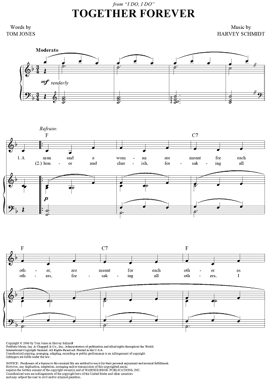 Digital Sheet Music for Together Forever by Tom Jones, Harvey Schmidt scored for Piano/Vocal/Chords; id:313538