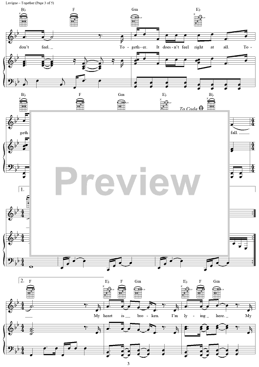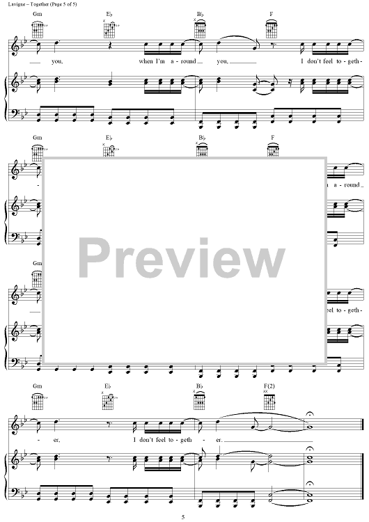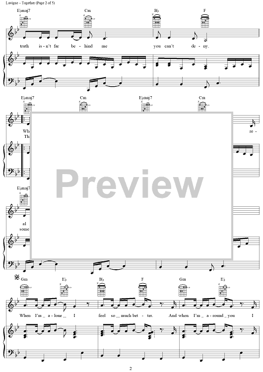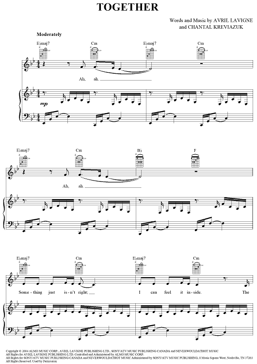 Digital Sheet Music for Together by Avril Lavigne, Chantal Kreviazuk scored for Piano/Vocal/Chords; id:402940