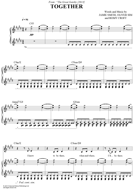 Digital Sheet Music for Together by Jamie Smith, Romy Croft, The XX scored for Piano/Vocal/Chords; id:436729