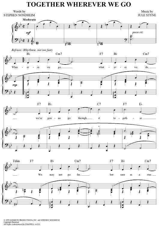 Digital Sheet Music for Together Wherever We Go by Stephen Sondheim, Jule Styne scored for Piano/Vocal/Chords; id:297809