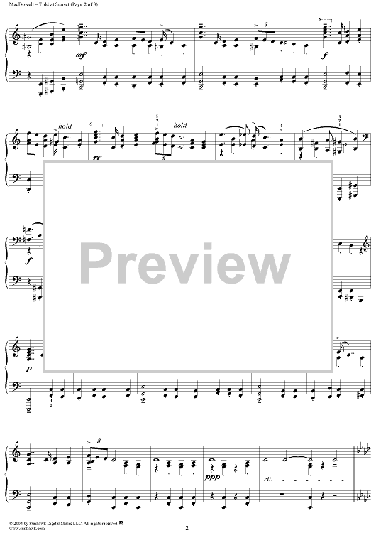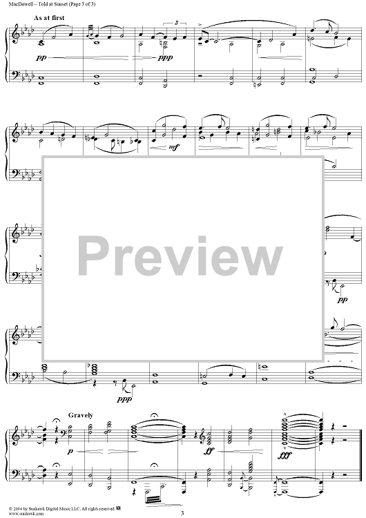 Digital Sheet Music for Told at Sunset, Op. 51, No. 10 by Edward MacDowell scored for Piano Solo; id:295565