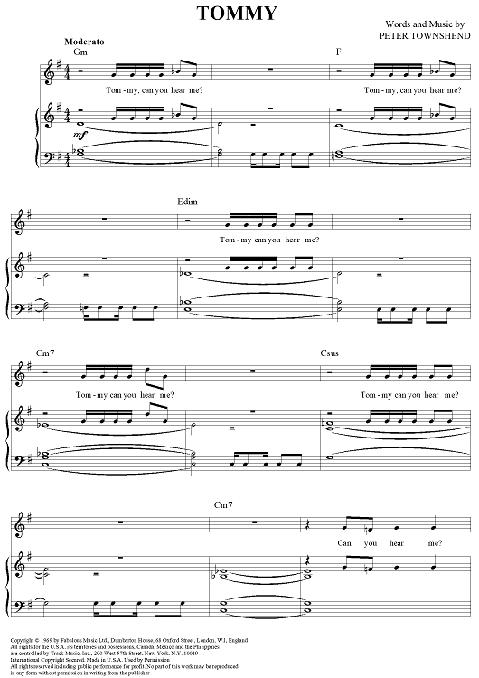 Songs from the original soundtrack recording of Robert Stigwood's production of the Ken Russell film, TOMMY!