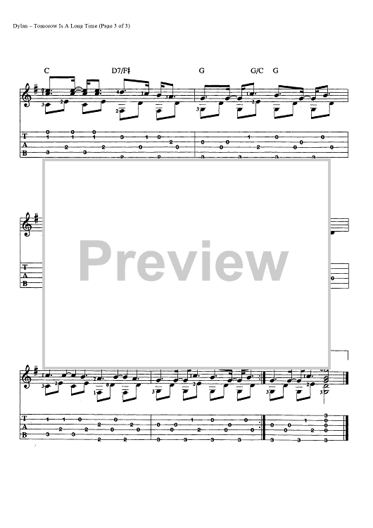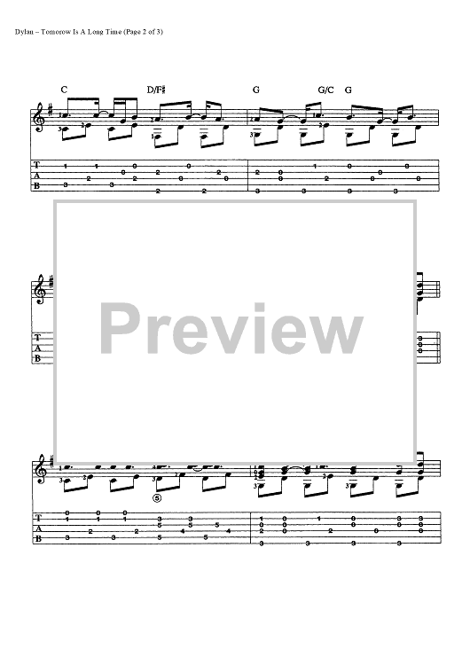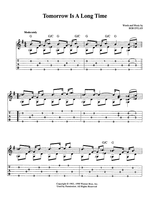 Digital Sheet Music for Tomorrow Is A Long Time by Bob Dylan scored for Guitar Tab; id:445536
