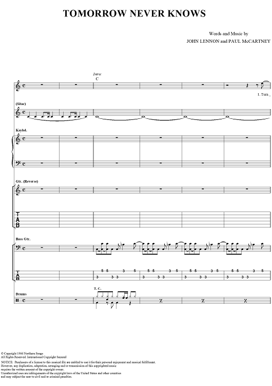 "Tomorrow Never Knows" Sheet Music by The Beatles