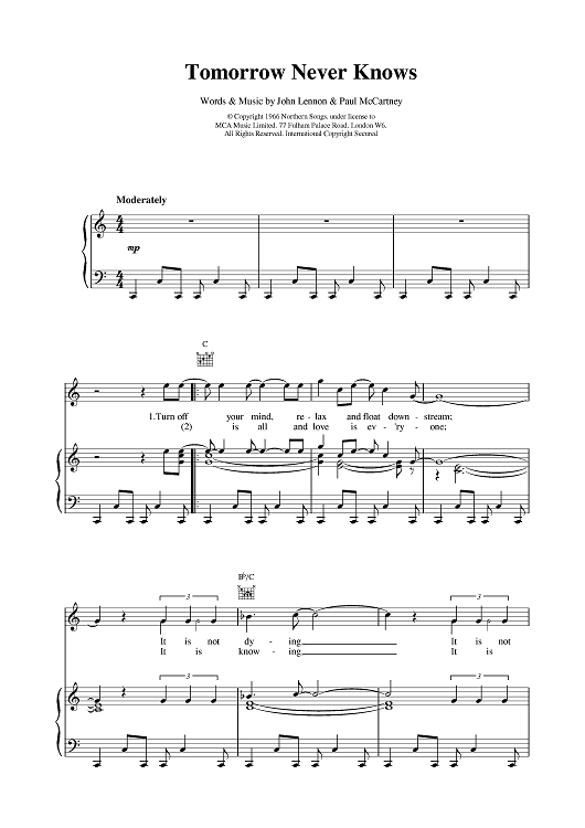 Digital Sheet Music for Tomorrow Never Knows by Paul McCartney, The Beatles, John Lennon scored for Piano/Vocal/Chords; id:376568