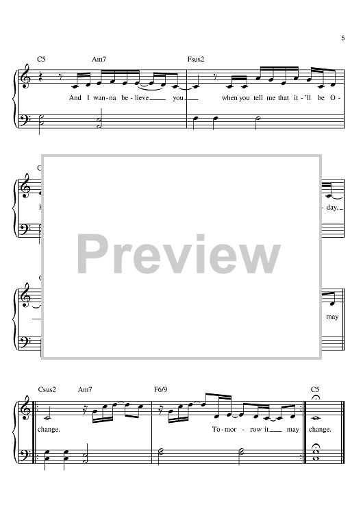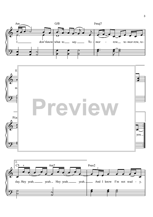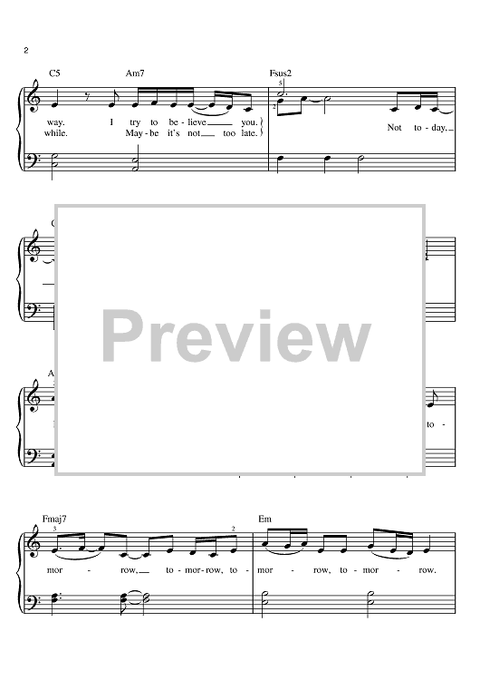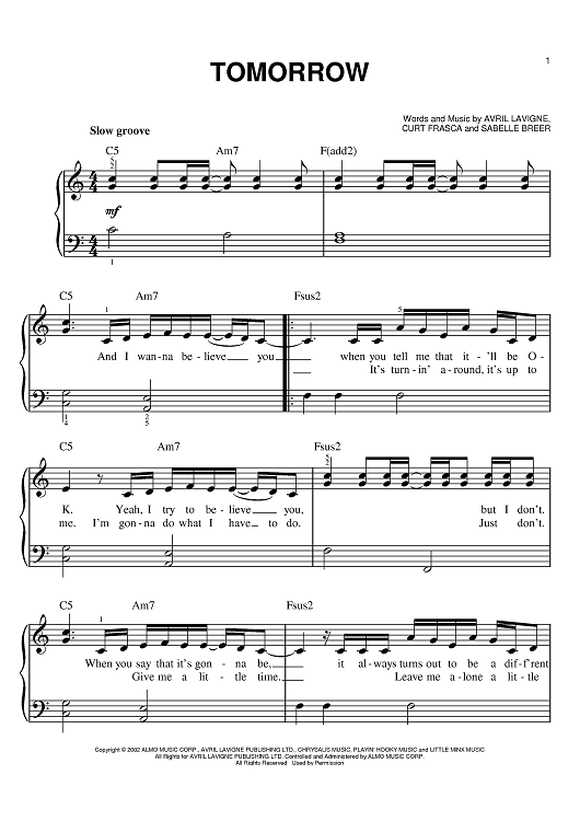 Digital Sheet Music for Tomorrow by Curt Frasca, Avril Lavigne, Sabelle Breer scored for Easy Piano; id:371177