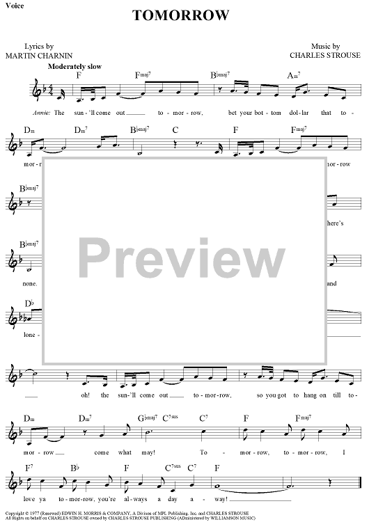 Digital Sheet Music for Tomorrow by Charles Strouse, Martin Charnin scored for Lead Sheet; id:441749