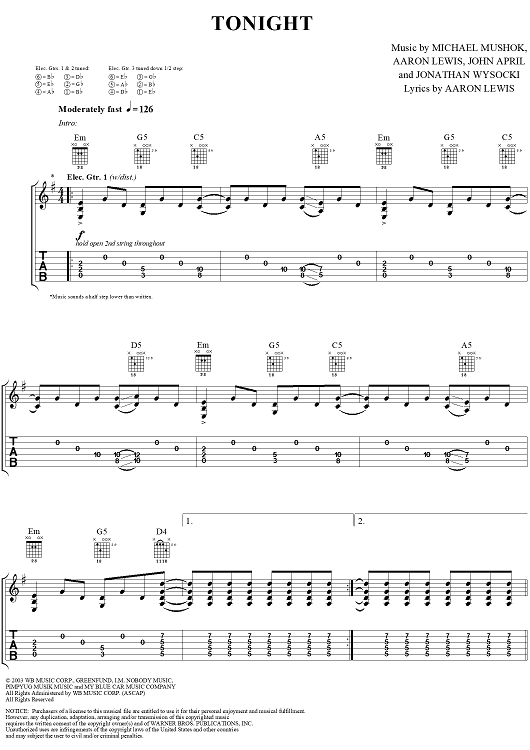 Digital Sheet Music for Tonight by Aaron Lewis, Michael Mushok, Jonathan Wysocki, John April, Staind scored for Guitar Tab/Vocal; id:297777
