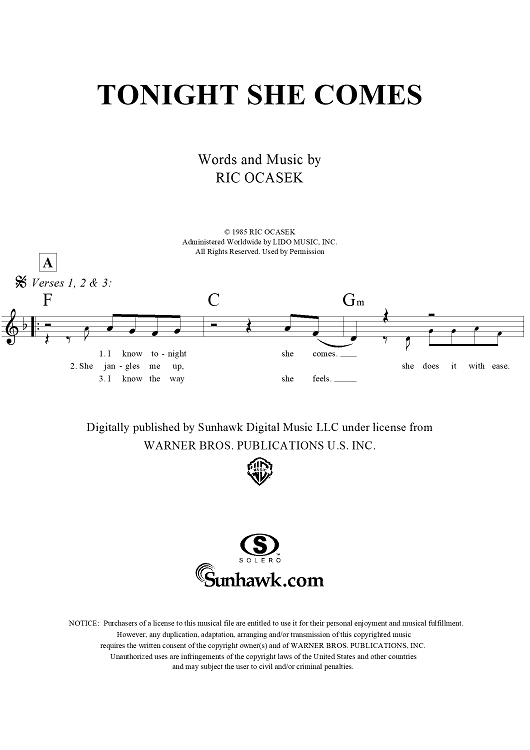 Digital Sheet Music for Tonight She Comes by Ric Ocasek, The Cars scored for Lead Sheet; id:293796